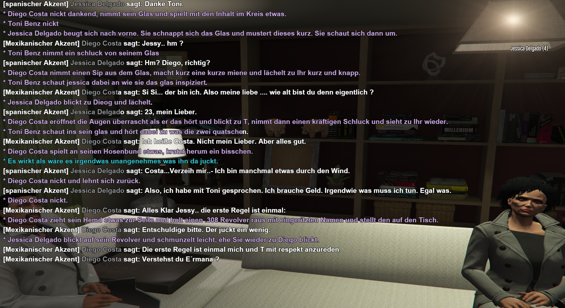Alle Handlungen und Dialoge laufen über den Ingame-Chat, mit dem Fokus auf überlegtes, ausformuliertes RP.